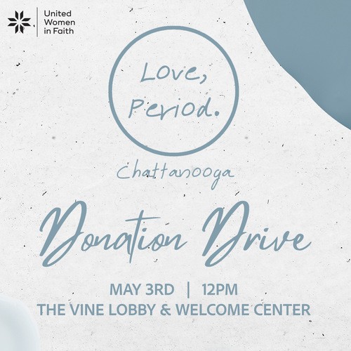 United Women in Faith is collecting feminine hygiene products to support Love, Period. of Chattanooga. The mission of Love, Period. of Chattanooga is to provide period products to all menstruators in the Chattanooga area so that activities of daily living never have to be compromised due to inaccessibility to these products. Donations of unscented, individually wrapped tampons, thin pads, liners, or small, clean cosmetic bags can be dropped off in the collection buckets in the Welcome Center through May 3rd. On May 3rd, UWF members are invited to go out to lunch for a time of fellowship. Meet in the Vine lobby after the 10:45 service if you'd like to join.